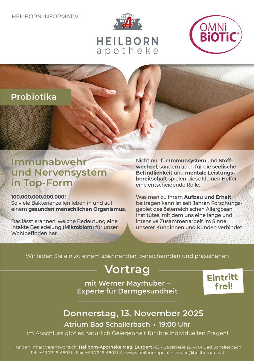 Wir laden Sie ein zu einem spannenden, bereichernden und praxisnahen Vortrag mit Werner Mayrhuber – Experte für Darmgesundheit.